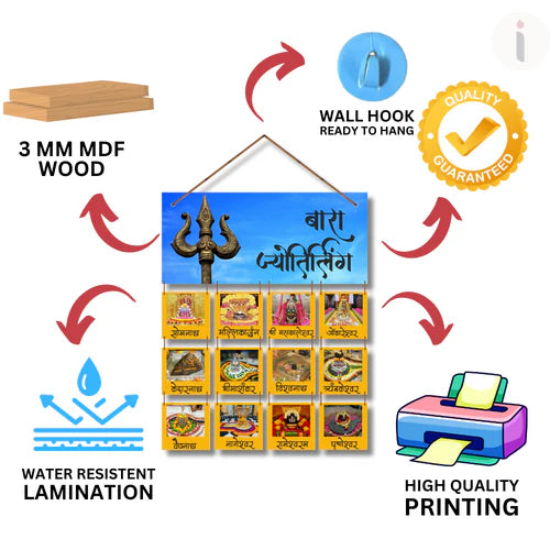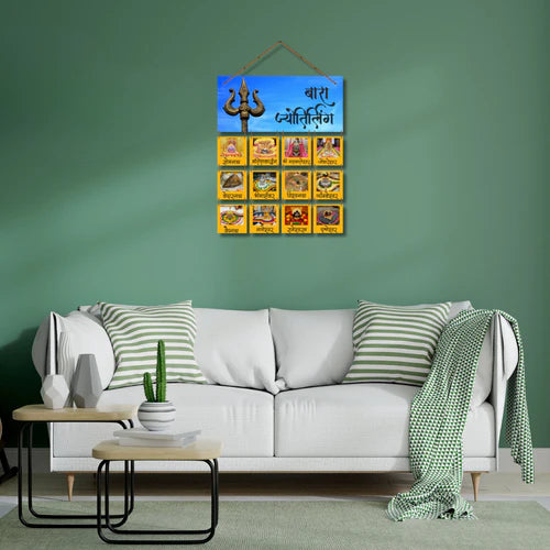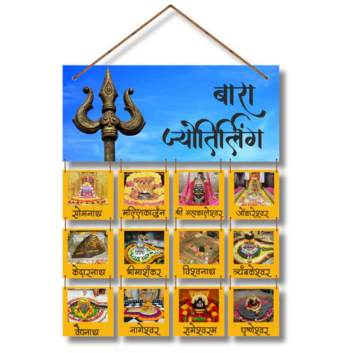 Honor the twelve sacred abodes of Lord Shiva with this exquisitely crafted Bara Jyotirlingas Wall Hanging. Featuring detailed illustrations and the names of all 12 revered Jyotirlinga sites—from Somnath to Rameshwaram—this piece brings the essence of devotion, pilgrimage, and spiritual energy into your home.