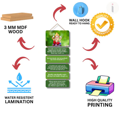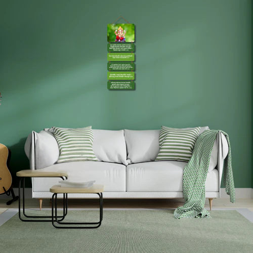 Celebrate the sacred glow of Deepavali with this beautifully crafted Ganpati-themed Shloka Wall Hanging, a divine fusion of art, tradition, and festivity. Designed to bring positivity, wisdom, and spiritual depth to your décor, this elegant piece features a vibrant image of Lord Ganesha, the bringer of success and remover of obstacles, at the top.