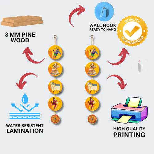 Crafted from premium MDF wood with a rich printed finish, the wall hanging captures Krishna in a traditional, endearing pose, radiating positivity, love, and sacred beauty. Whether placed in a temple, meditation room, entrance, or living area, it elevates the ambiance with a sense of devotion and serenity.