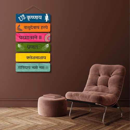 Krishnaya Vasudevaya Haraye" Wall Hanging – MDF Wooden Spiritual Decor