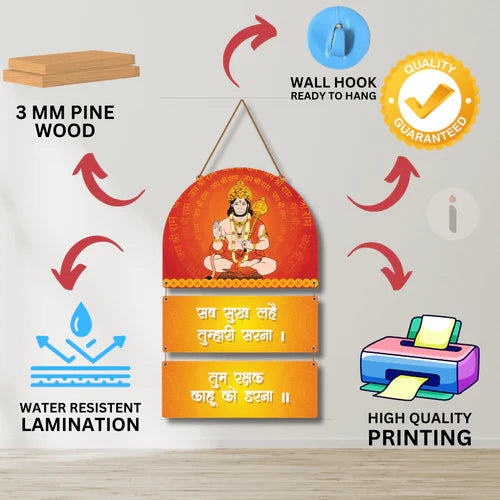 Crafted from premium MDF wood with a high-quality printed finish, it showcases intricate artwork and scriptural elegance, making it ideal for homes, meditation spaces, offices, or pooja rooms. This wall hanging serves as a daily reminder of devotion, encouraging inner strength, courage, and spiritual grounding.