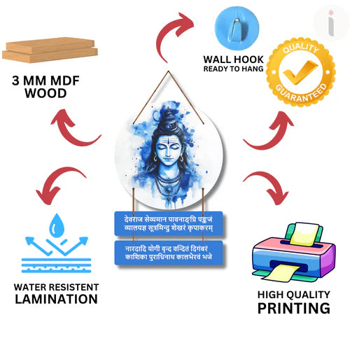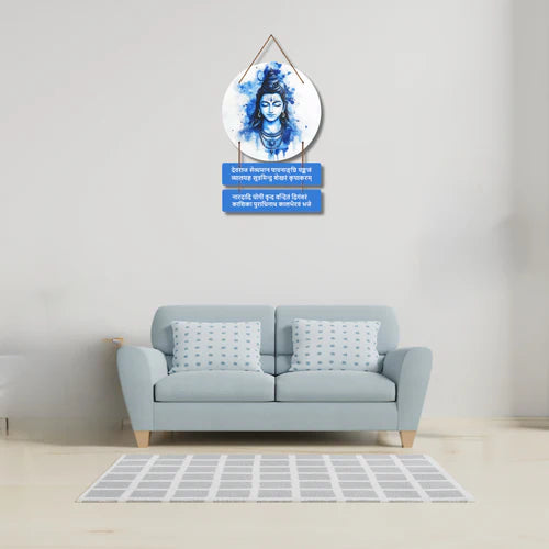 The circular design, set in deep blue hues, symbolizes eternal wisdom and devotion. Crafted from premium MDF wood with a high-quality printed finish, this wall hanging is a perfect blend of tradition and modern artistry — ideal for pooja rooms, meditation corners, yoga studios, or sacred gifting.
