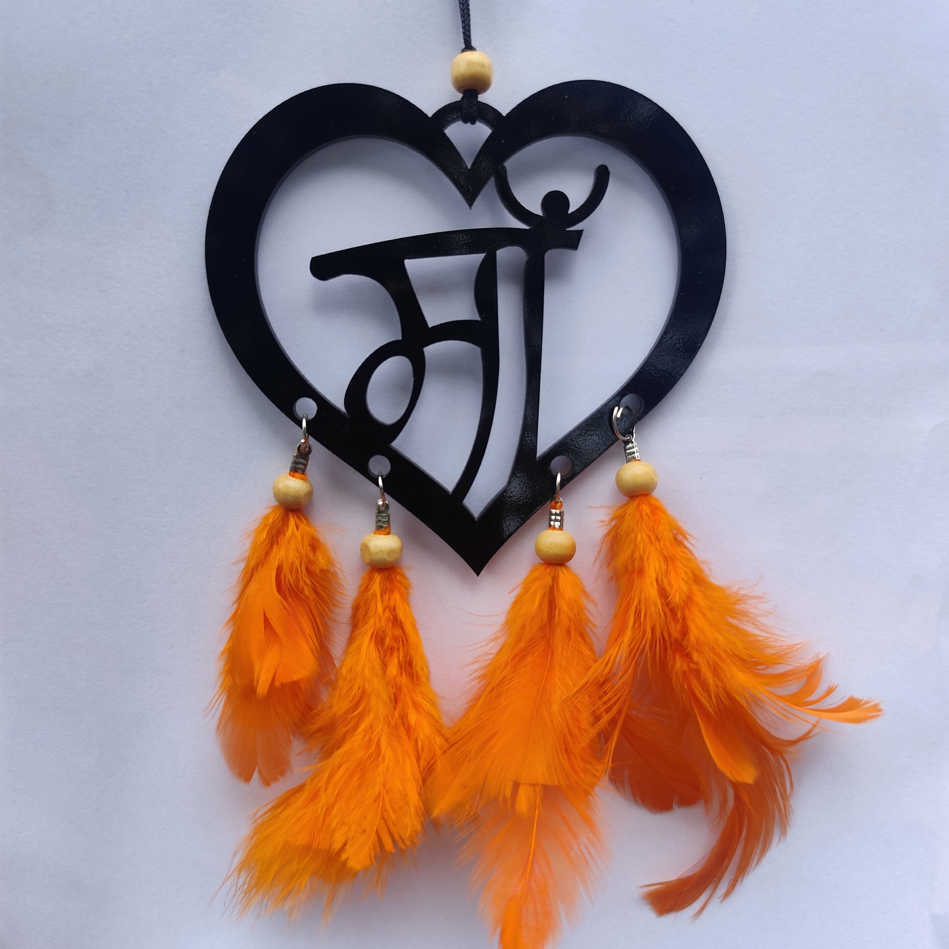 Adorned with vibrant orange feathers, it adds a splash of color and positivity to your car's interior, making it a perfect blend of tradition and aesthetic appeal.