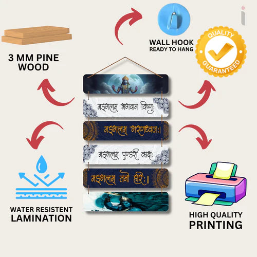 Crafted from premium MDF wood and printed with intricate detailing, this wall hanging reflects both devotional significance and visual elegance. Whether displayed in a pooja room, meditation space, living room, or entrance, it creates an atmosphere of divine harmony.