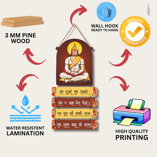Invoke the divine guardianship of Lord Hanuman with this spiritually uplifting "Ram Duaare Tum Rakhavale" wall hanging. Featuring the powerful verse from the Hanuman Chalisa, this décor piece is a reminder of Hanumanji’s unwavering protection over devotees who surrender at Lord Ram's door.