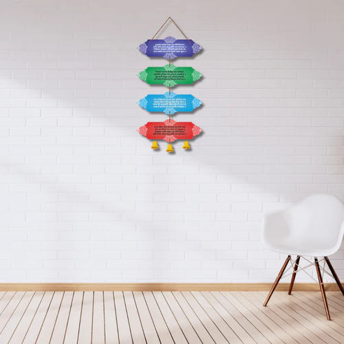 Celebrate the fierce grace of Lord Shiva with this vibrant Shiv Tandav Stotram Wall Hanging, beautifully designed to bring divine rhythm and spiritual strength into your surroundings. Featuring powerful Sanskrit verses from the revered Shiv Tandav Stotram, each colorful panel showcases sacred slokas alongside traditional Indian motifs in rich hues of purple, green, blue, and red.