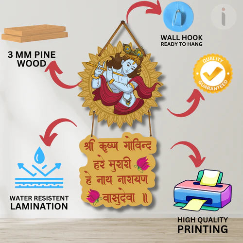Crafted from premium MDF wood with a vivid printed finish, this piece combines durability with devotional beauty. Its modern design seamlessly blends with traditional values, making it suitable for living rooms, pooja corners, entrances, and workspaces.