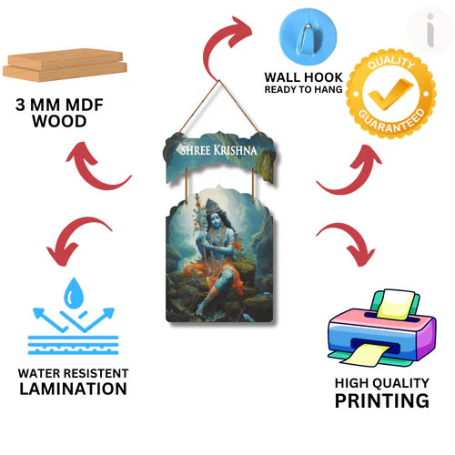Crafted from premium MDF wood and finished with high-quality printing, the artwork beautifully captures the grace and serenity of Lord Krishna. Whether placed in a prayer room, meditation area, bedroom, or living space, it creates a peaceful ambiance that uplifts your surroundings and enriches your spiritual practice.